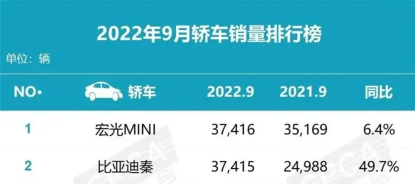 刚刚过去的9月,比亚迪秦多卖2辆就要取代MINI EV,成为轿车销量榜的冠军。