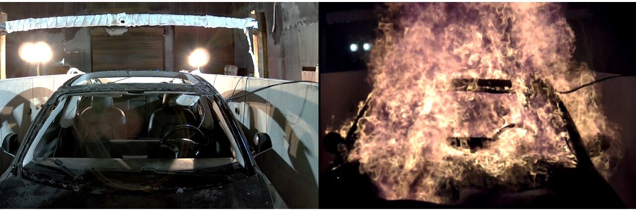 Fernandez表示:“我们依靠技术专业知识以及宽敞的实验室环境,成功模拟热失控现象,以评估车辆外壳的防火性能。当火焰完全吞噬车辆时,我们采用热电偶测量了车辆外壳内外的温度。”