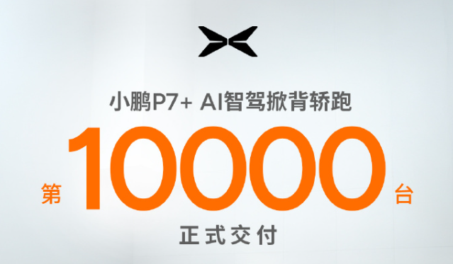 12月11日,小鹏汽车宣布, 旗下的P7+车型在上市四周时间内,完成10000台交付。